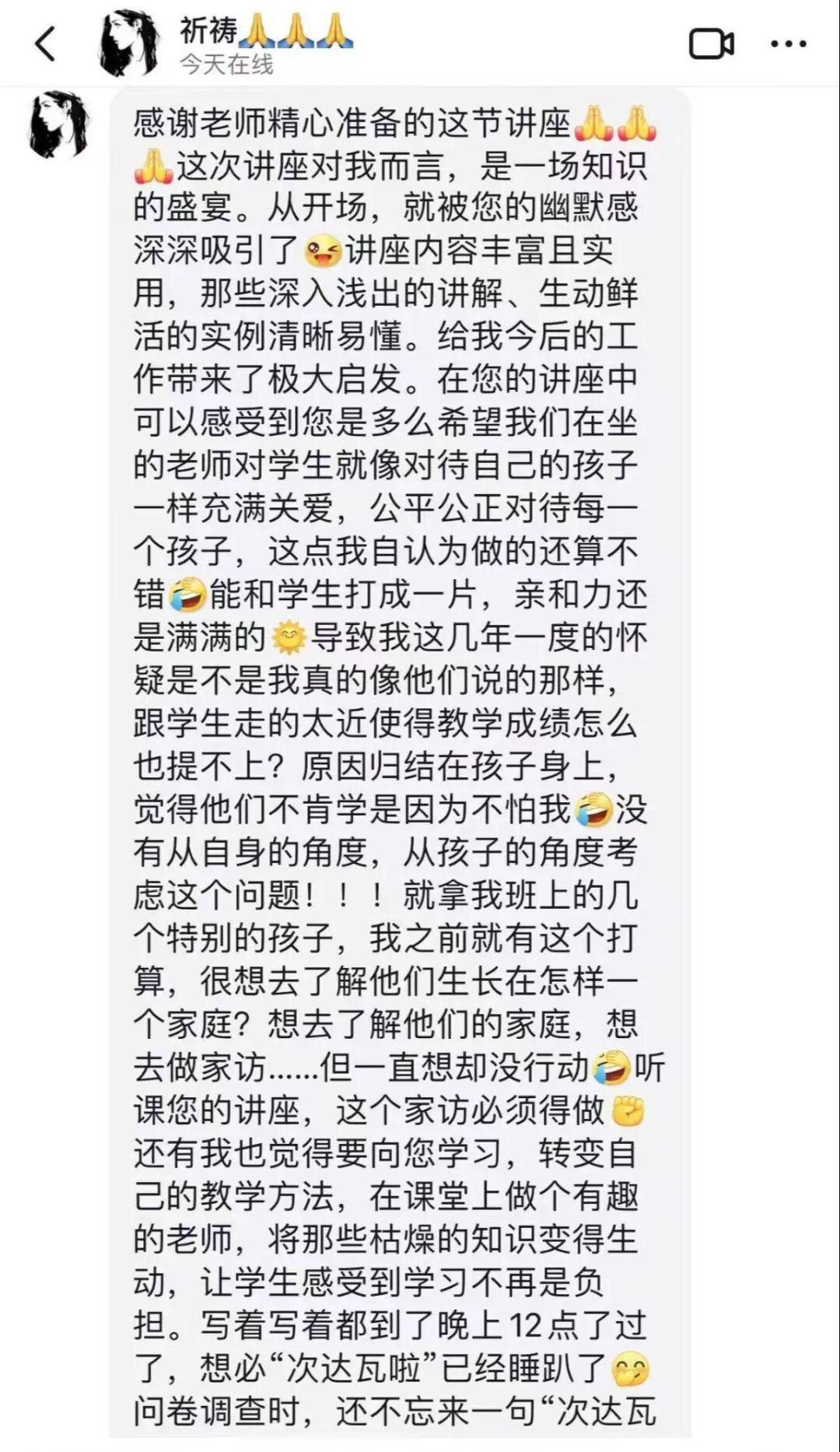 我院联合第三方开展本次系列宣讲活动,帮助教师们树立了依法执教的法治意识,领会了心、智、德、行相统一的从教方式,从而鼓励他们不仅要做知识的灯塔,更要成为学生品德的引路人、行为的守护者。下一步,我院将持续优化法治教育内容与形式,增强检教合作共建力度,提升师生法治观念,凝聚教职工对未成年人的保护合力,筑牢“六大保护”,共同织密未成年人法治保护网,为构建和谐、安全的校园环境贡献检察力量。