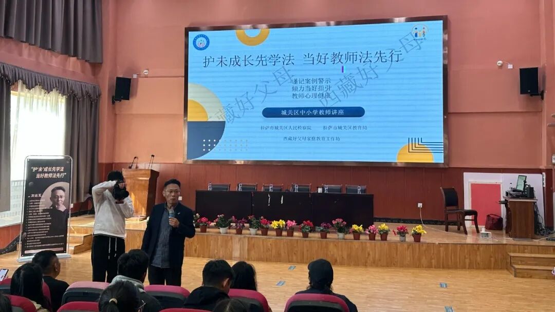师者,人之模范也。为深入推进法治校园构建,切实开展“检护民生”专项行动,助力教师队伍法律素养提升,强化教师队伍师德师风建设,筑起未成年人保护的第一道坚固防线。今年10月17日至12月19日期间,拉萨市城关区人民检察院联合“西藏好父母家庭教育有限责任公司”,开展“护‘未’成长先学法,当好教师法先行”校园法治宣讲与教师心理健康讲座。该项目涵盖本辖区28所小学和9所中学,旨在提升教师职业道德水平、普及法律知识、助力教师关注心理健康。截至目前,共计开展34场讲座。