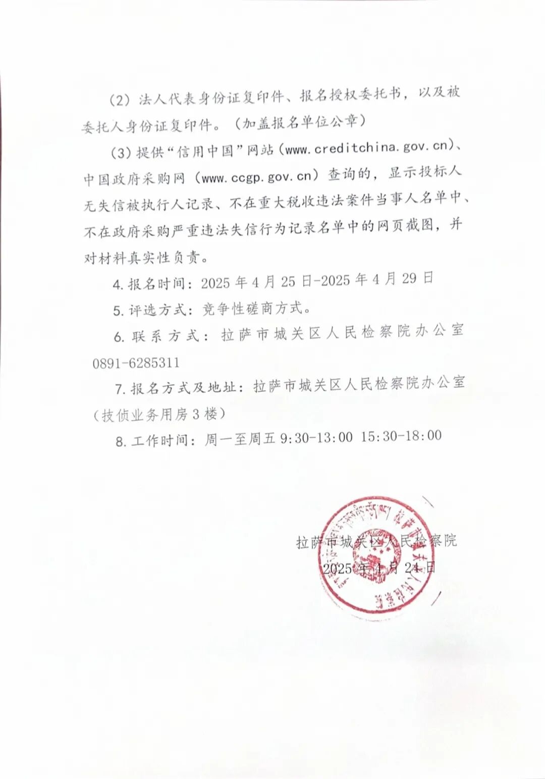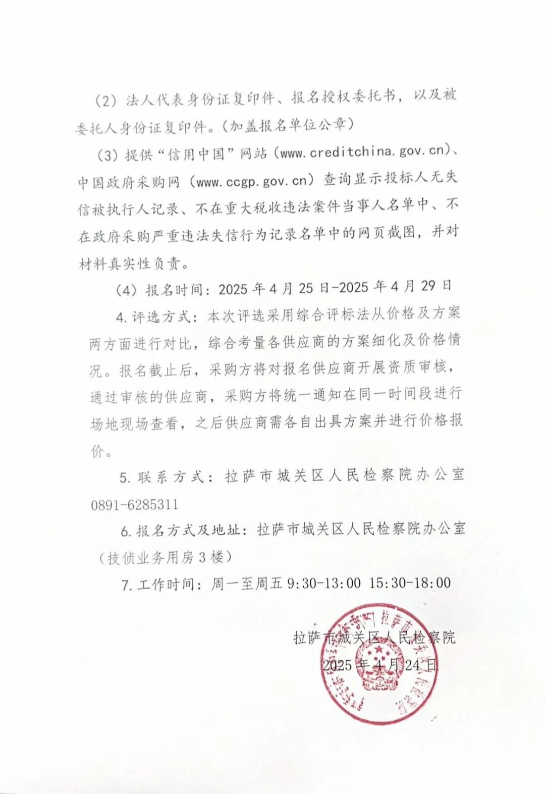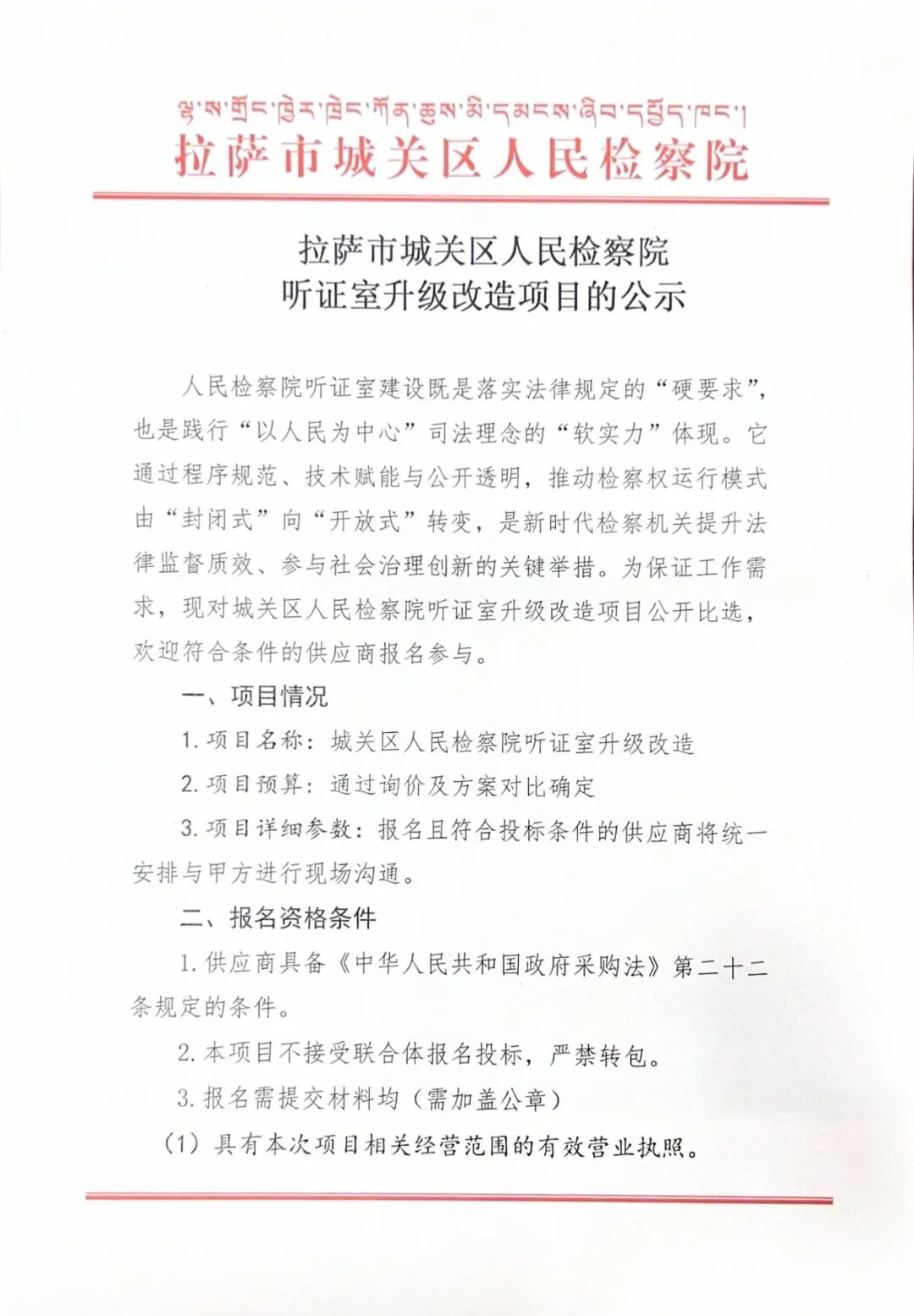 拉萨市城关区人民检察院关于听证室升级改造项目及比选公务用车定点维修和保养承包商的公告