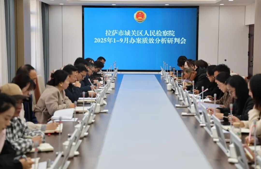 近日,拉萨市城关区人民检察院召开案件质效分析研判会,全面分析2025年1-9月各项检察业务开展情况,总结经验、查找短板、分析原因,明确下一步工作方向。院党组书记、检察长索朗旺庆主持会议并讲话,院班子成员、全体检察官及检察官助理参加会议。