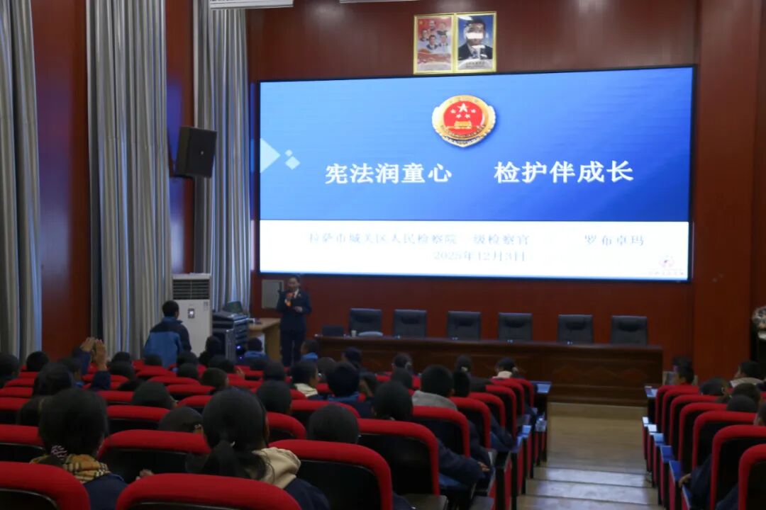 在第八个“宪法宣传周”期间,为让宪法精神浸润青少年心灵,筑牢校园安全防护网,拉萨市城关区人民检察院“格桑梅朵护未队”的法治副校长们陆续走进辖区3所学校,以“宪法护航+安全守护”为主题,为200余名师生带来一场干货满满的法治盛宴,用“检察蓝”为青春成长保驾护航。